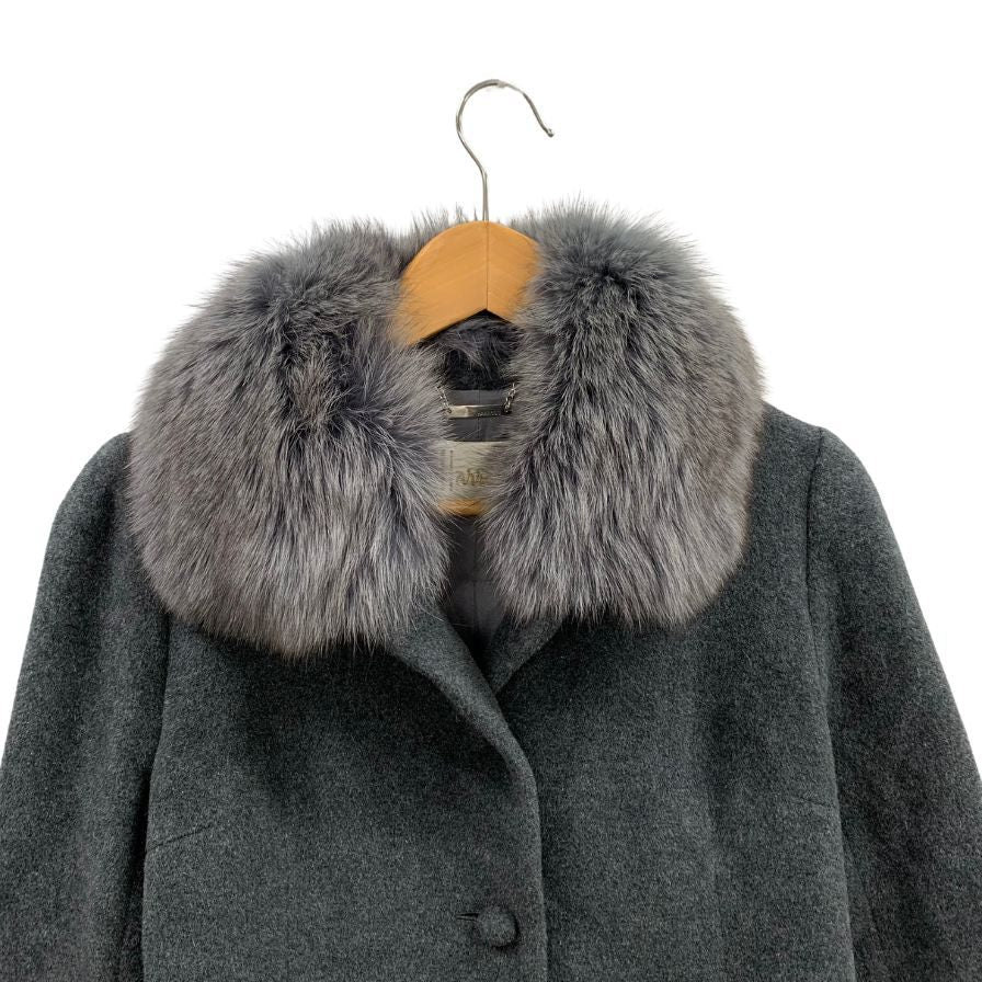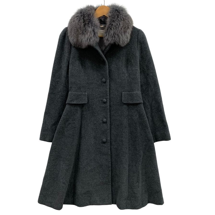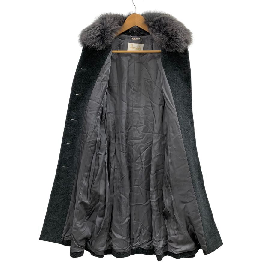 美品◆ハロッズ コート 16505111 アンゴラ フォックス ファー グレー レディース サイズ3 HARRODS 【AFF22】