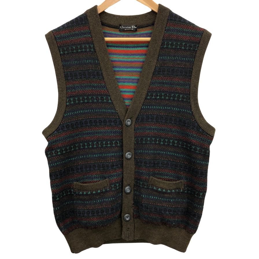 美品◆クリスチャンディオールムッシュ ベスト ウール Vネック 総柄 ウール メンズ サイズM Christian Dior monsieur 【AFB15】