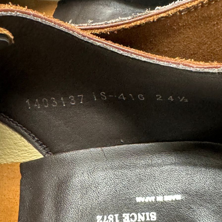 | 商品詳細 | 表記サイズ【24.5】(約24.5cm) アウトソール縦:29cm アウトソールウィズ:9.5cm 全高:8cm ヒール:2.5cm ※採寸に関しまして1~2cm程誤差が出てしまう場合もございます。予めご了承くださいませ。 |