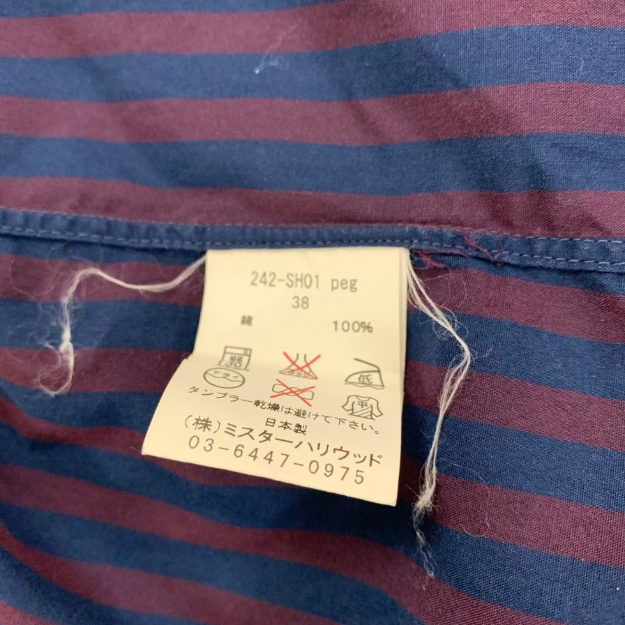 中古◆エヌハリウッド 長袖シャツ コットン ストライプ メンズ サイズ38 パープル ネイビー N.HOOLYWOOD 【AFB15】