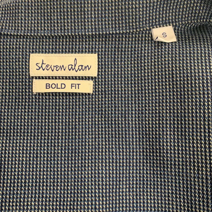 新品同様◆スティーブンアラン T/W ドビー ボックス キャンプ カラー シャツ ボールドフィット メンズ ネイビー Sサイズ 8111-149-0715 STEVEN ALAN 【AFA15】