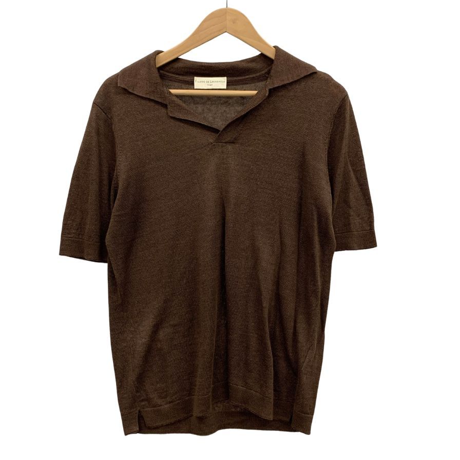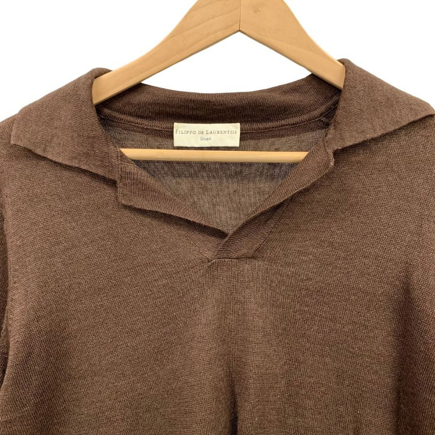 極美品◆フィリッポ デ ローレンティス ブラウン 半袖 リネン スキッパーポロ ブラウン系 メンズ サイズ46 FILIPPO DE LAURENTIIS 【AFB17】