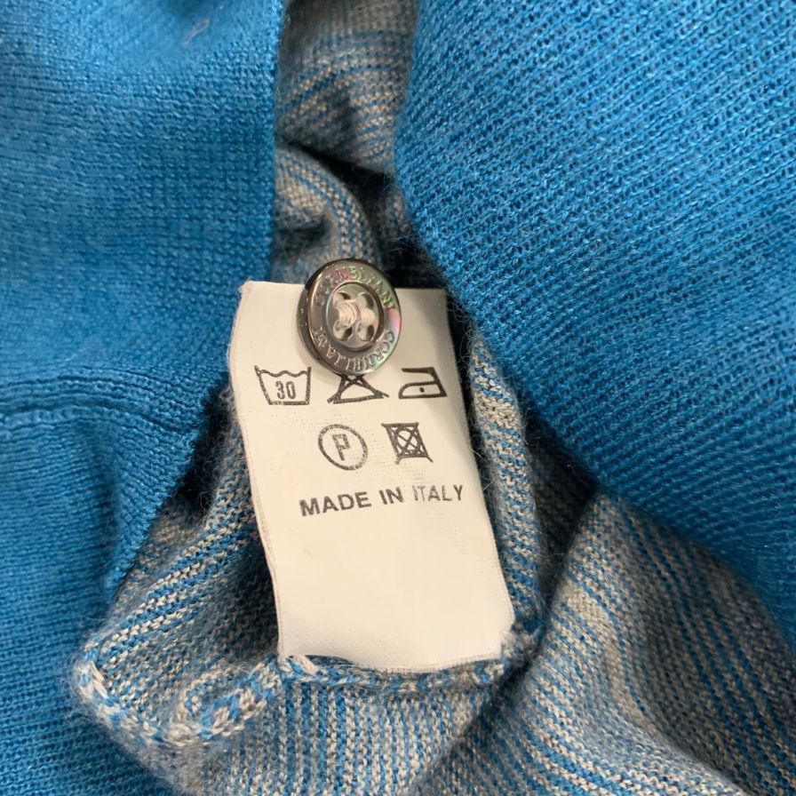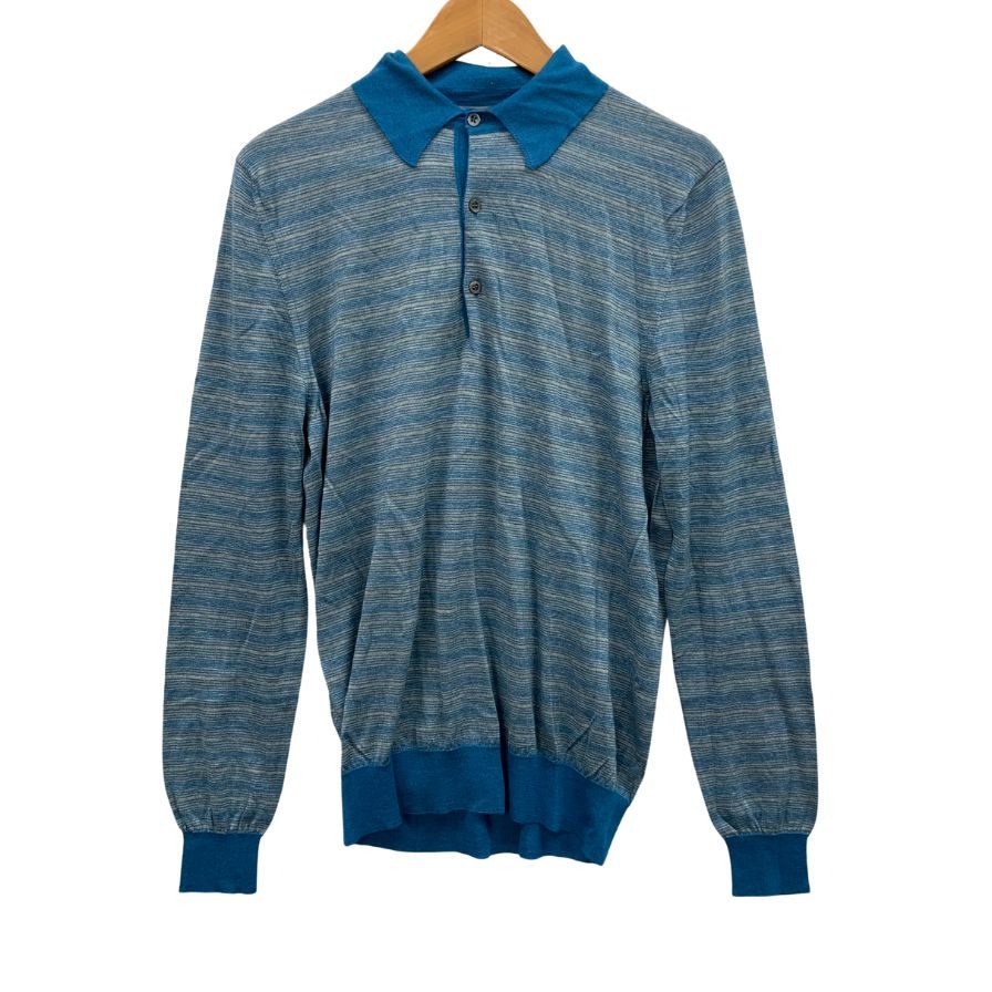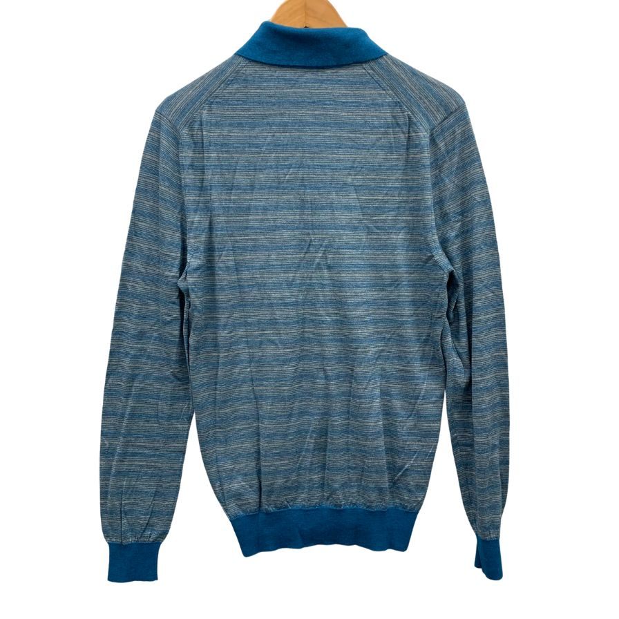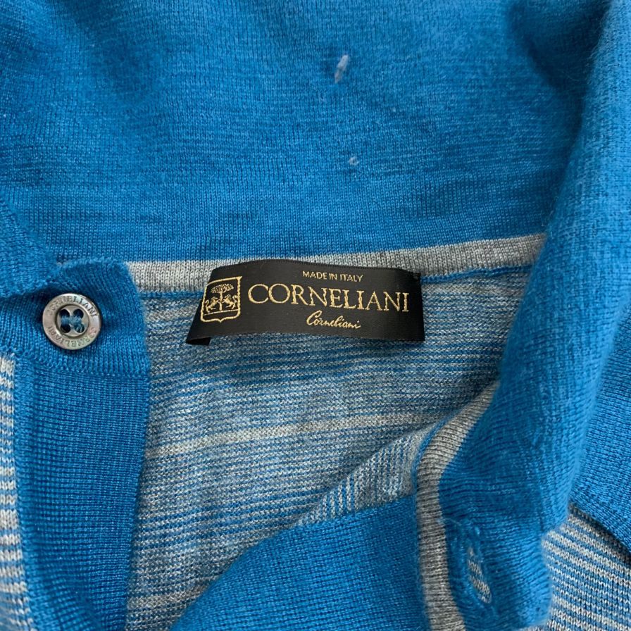 美品◆コルネリアーニ ポロシャツ ニット ボーダー カシミヤ混 ブルー系 メンズ サイズ50 CORNELIANI 【AFB14】