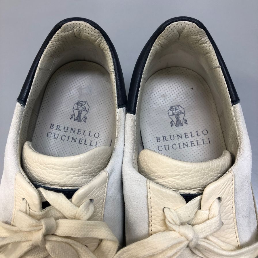 ブルネロ クチネリ レザースニーカー スエード ホワイト×ライトブルー EU40 BRUNELLO CUCINELLI 約25.0cm【AFC28】