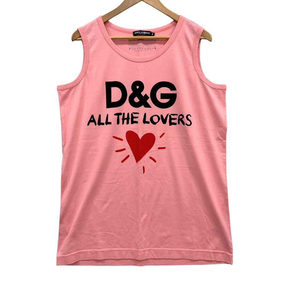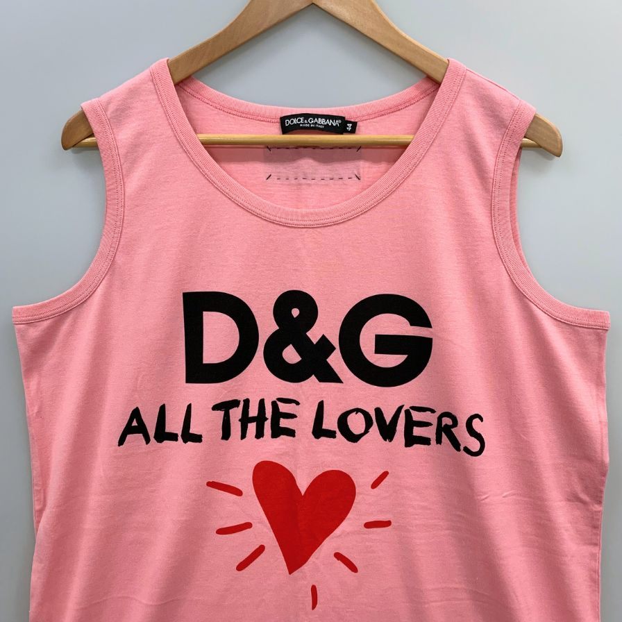 極美品◆ドルチェ&ガッバーナ ノースリーブTシャツ ALL THE LOVERS ピンク レディース サイズ44 DOLCE & GABBANA 【AFB43】