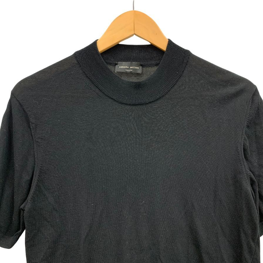美品◆ロベルトコリーナ 半袖モックネックニット ドライコットンハイゲージ ブラック メンズ サイズ46 roberto collina 【AFB19】