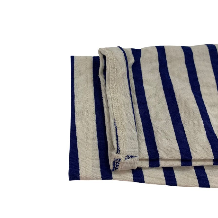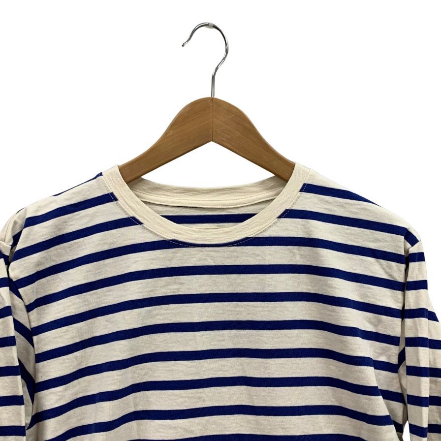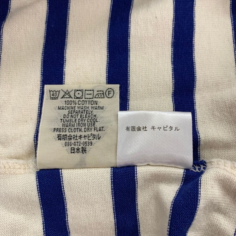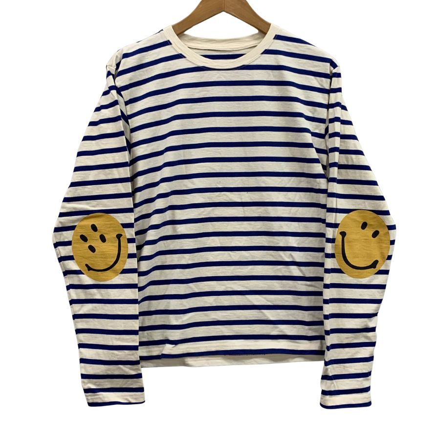 美品◆キャピタル Tシャツ スマイル エルボーパッチ ボーダー ブルー×ホワイト レディース サイズ2 kapital 【AFB13】