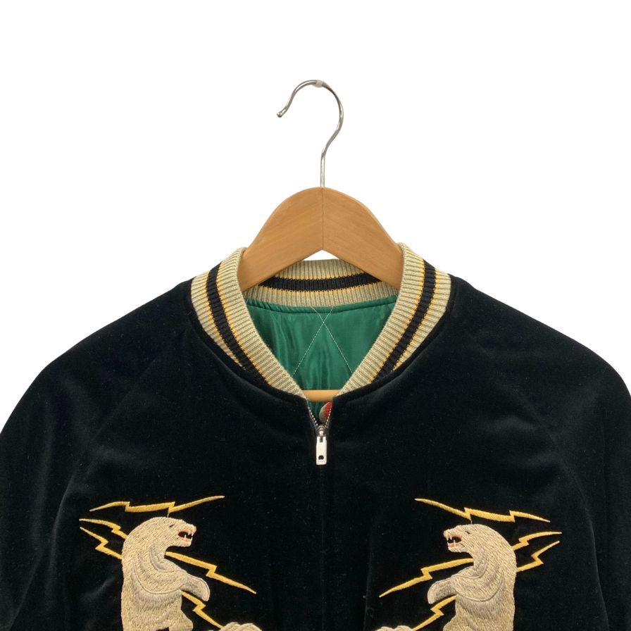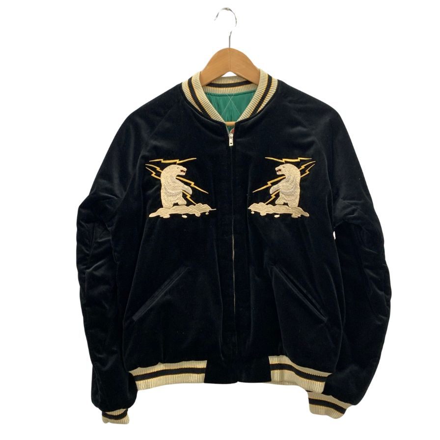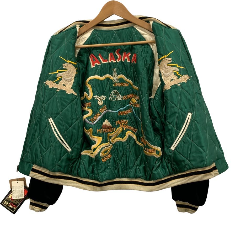 新品同様◆テーラー東洋 スカジャン リバーシブル 刺繍 別珍 TT15175 50年代 稲妻 白熊 アラスカマップ ブラック グリーン メンズ サイズM TAILOR Toyo 【AFA16】