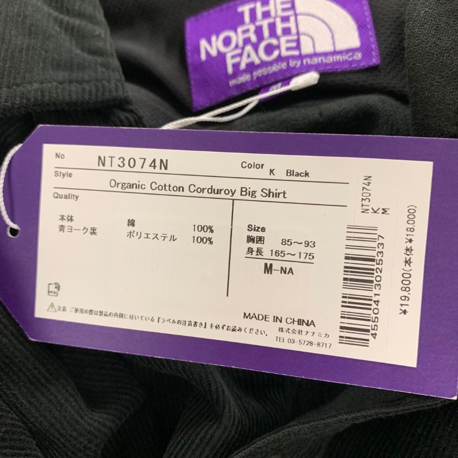 新品同様◆ザ ノースフェイス パープルレーベル バイ ナナミカ オーガニックコットンコーデュロイビッグシャツ NT3074N ブラック メンズ サイズM THE NORTH FACE PURPLE LABEL nanamica 【AFB36】