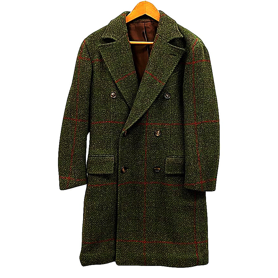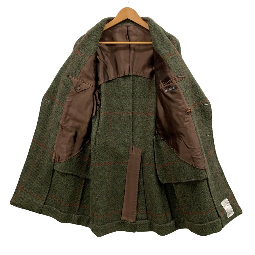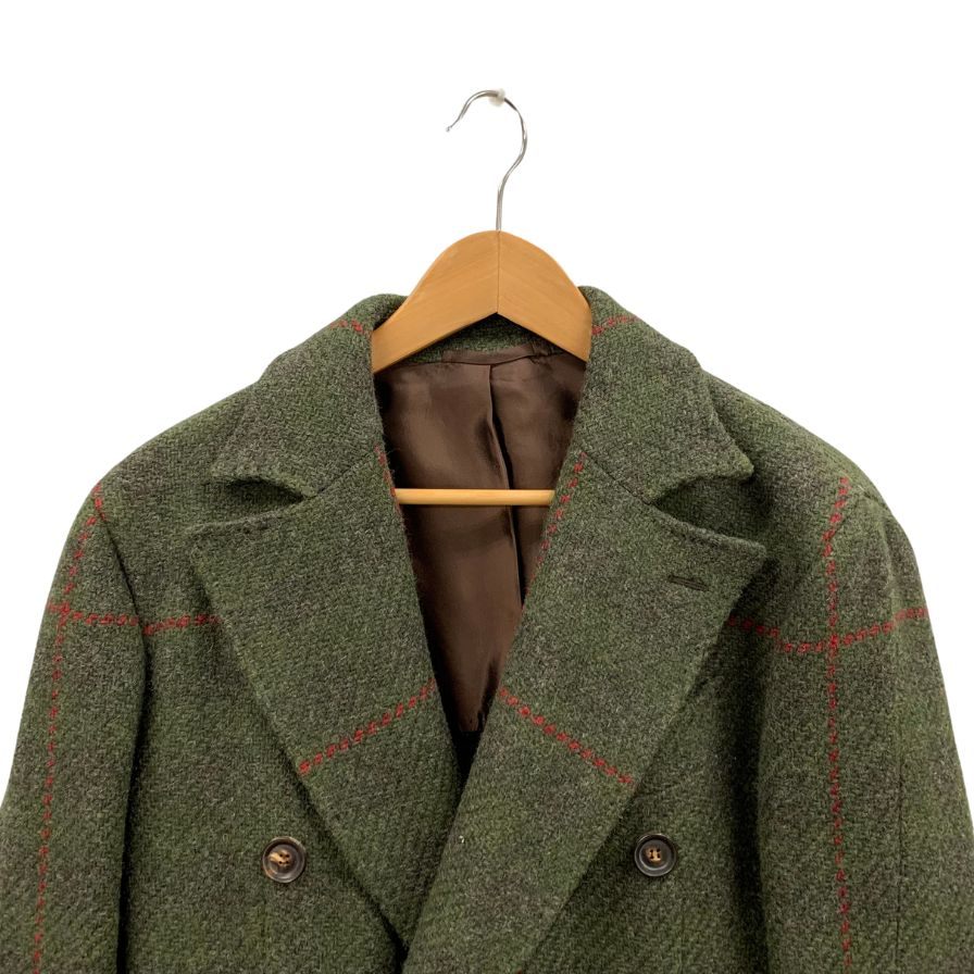 美品◆スティレ ラティーノ ロングコート ダブル ウール チェック柄 グリーン メンズ サイズ46 Stile Latino 【AFA11】