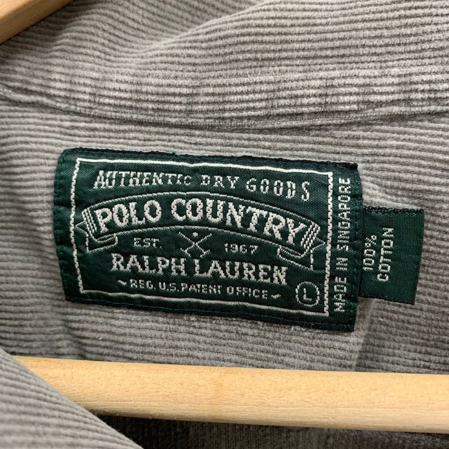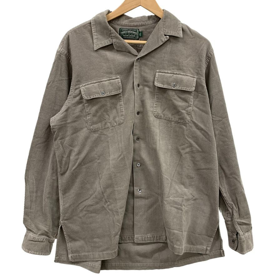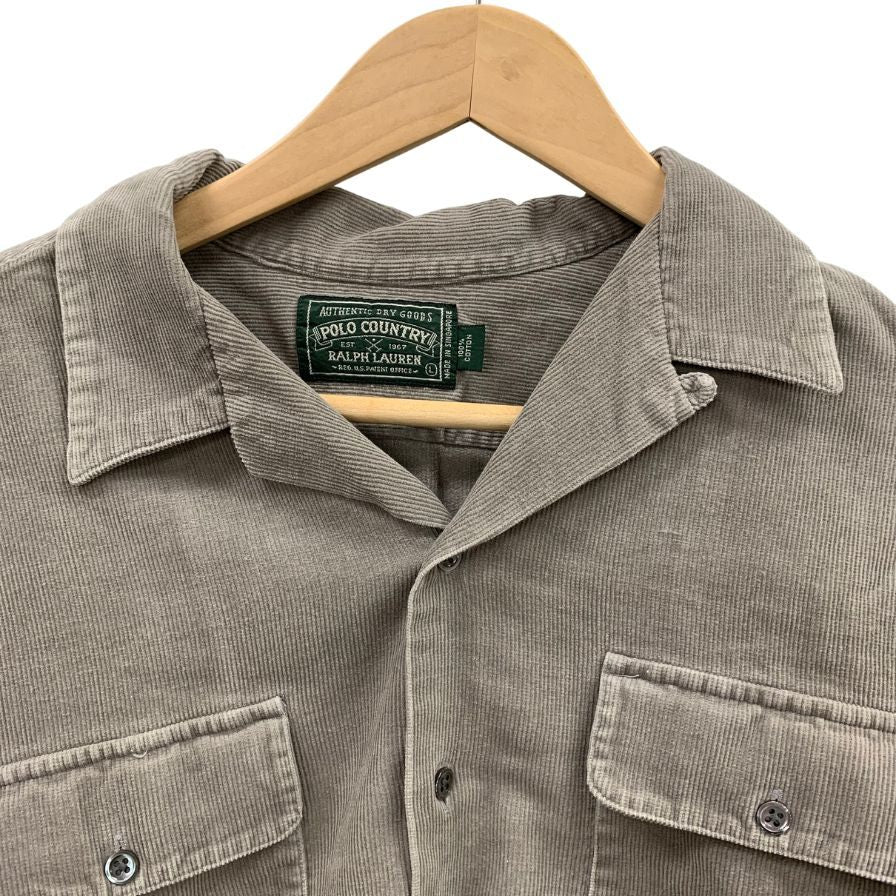 美品◆ポロ カントリー シャツ オープンカラーコーデュロイ サファリ サイズL グレー系 メンズ POLO COUNTRY 【AFB8】