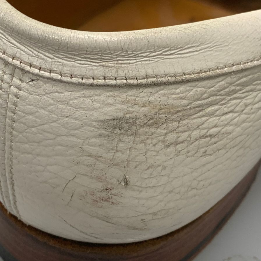 | 状態詳細 | 履き皺、モカ割れ、表面に擦れ・汚れ、腰裏に擦れ、インソールに擦れ、型崩れ、ソールリペアが見られます。 |
