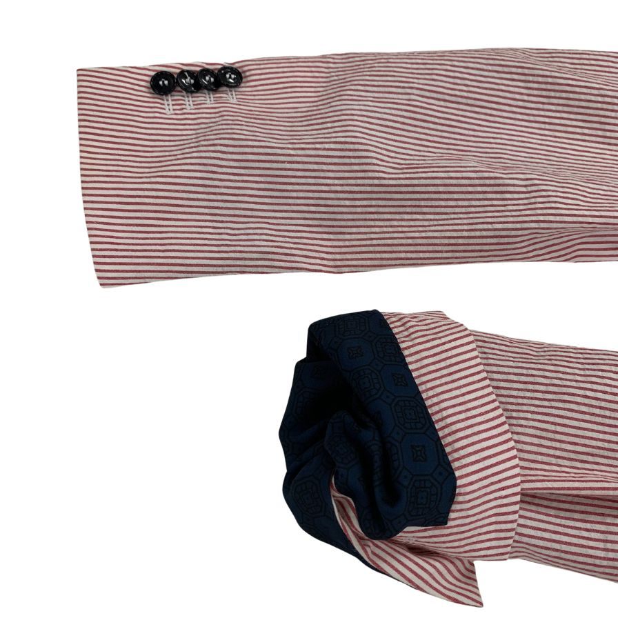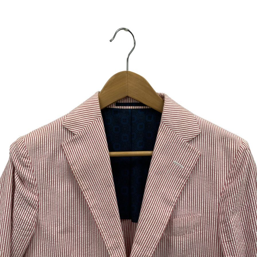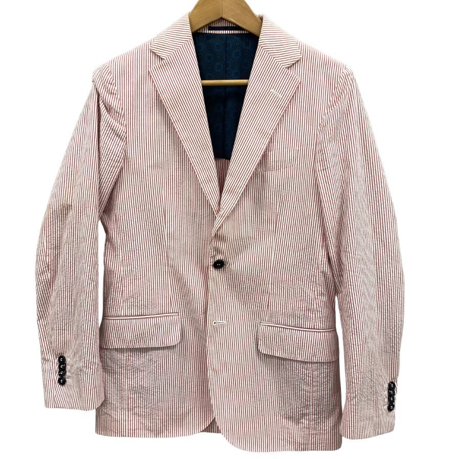 美品◆マッシモ ピオンボ テーラードジャケット ストライプ コットン レッド ホワイト サイズ44 メンズ MASSIMO PIOMBO 【AFB38】