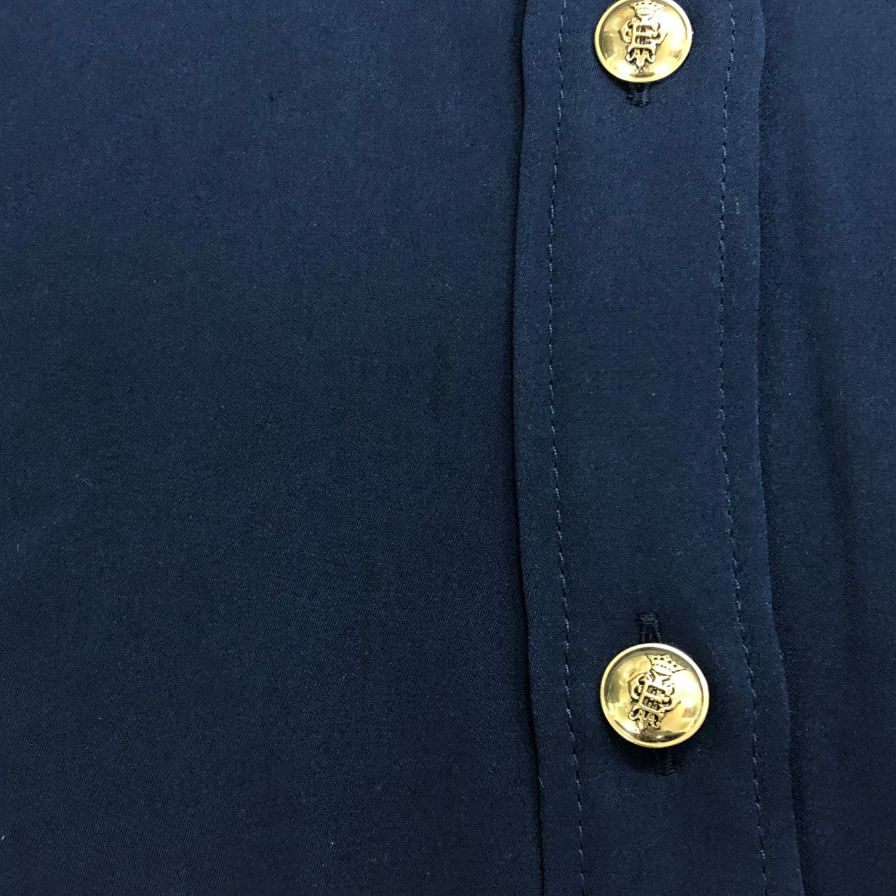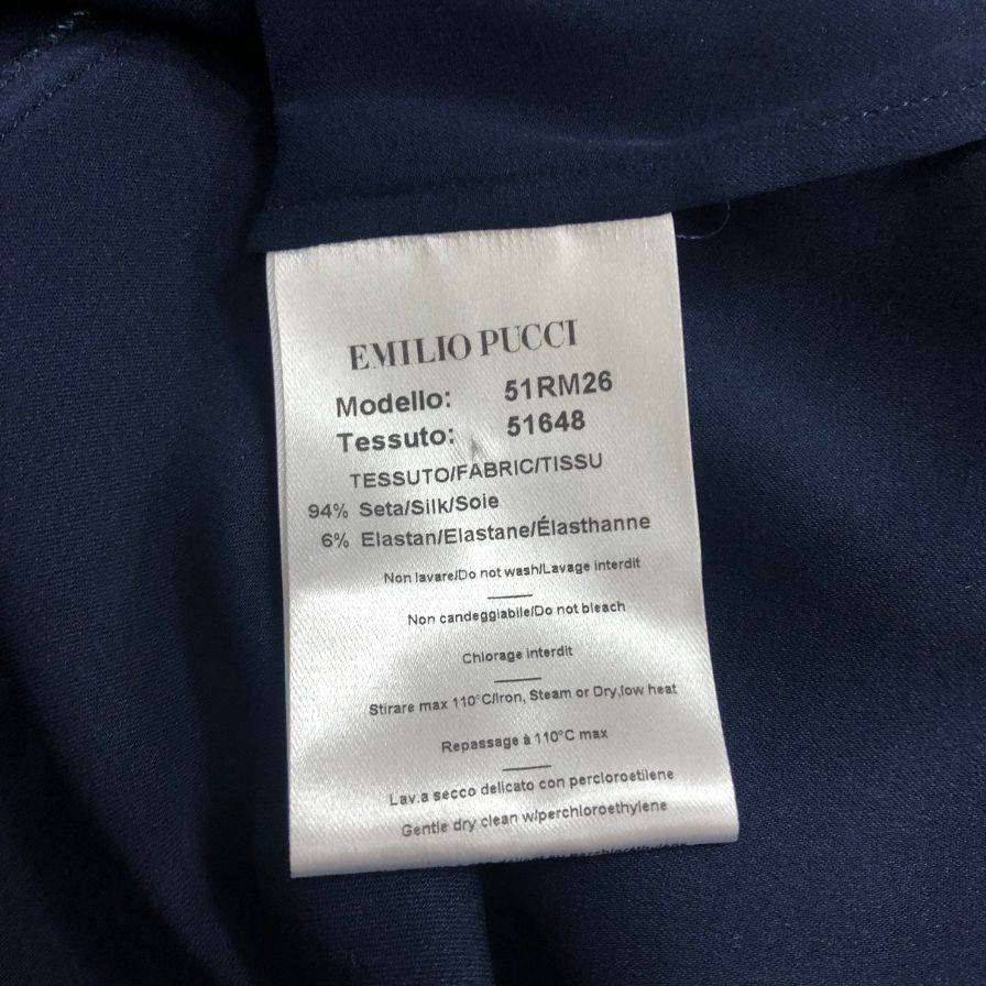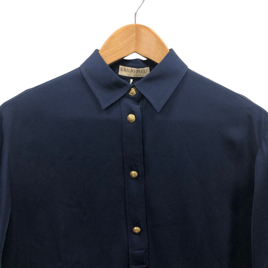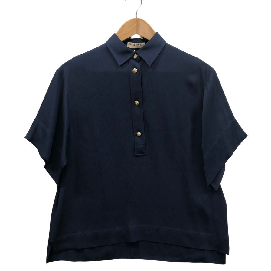 美品◆エミリオプッチ シャツ 半袖 51MR26 シルク エラスタン サイズ36 レディース ネイビー EMILIO PUCCI 【AFB9】