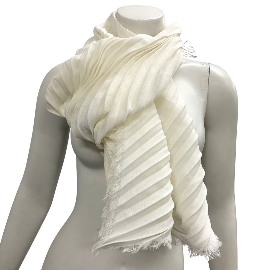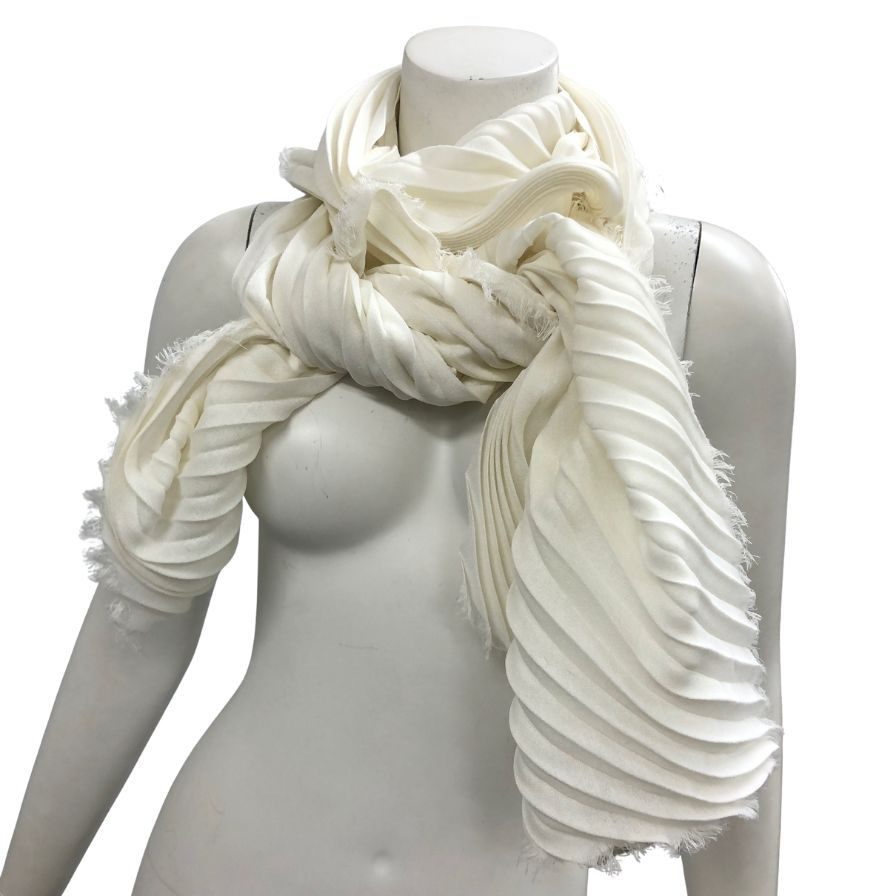 イッセイミヤケ プリーツ ストール ホワイト シルク混 IM43AD102 ISSEY MIYAKE【AFI20】