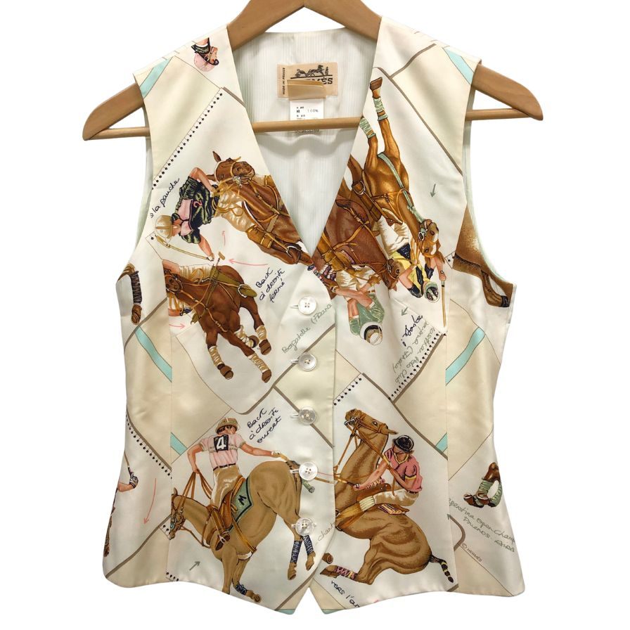 中古◆エルメス ベスト スカーフ 総柄 ジレ デザイン マルジェラ期 90s 90年代 ホワイト レディース サイズ38 HEMRES 【AFB8】