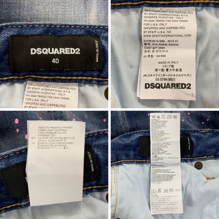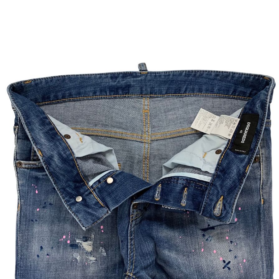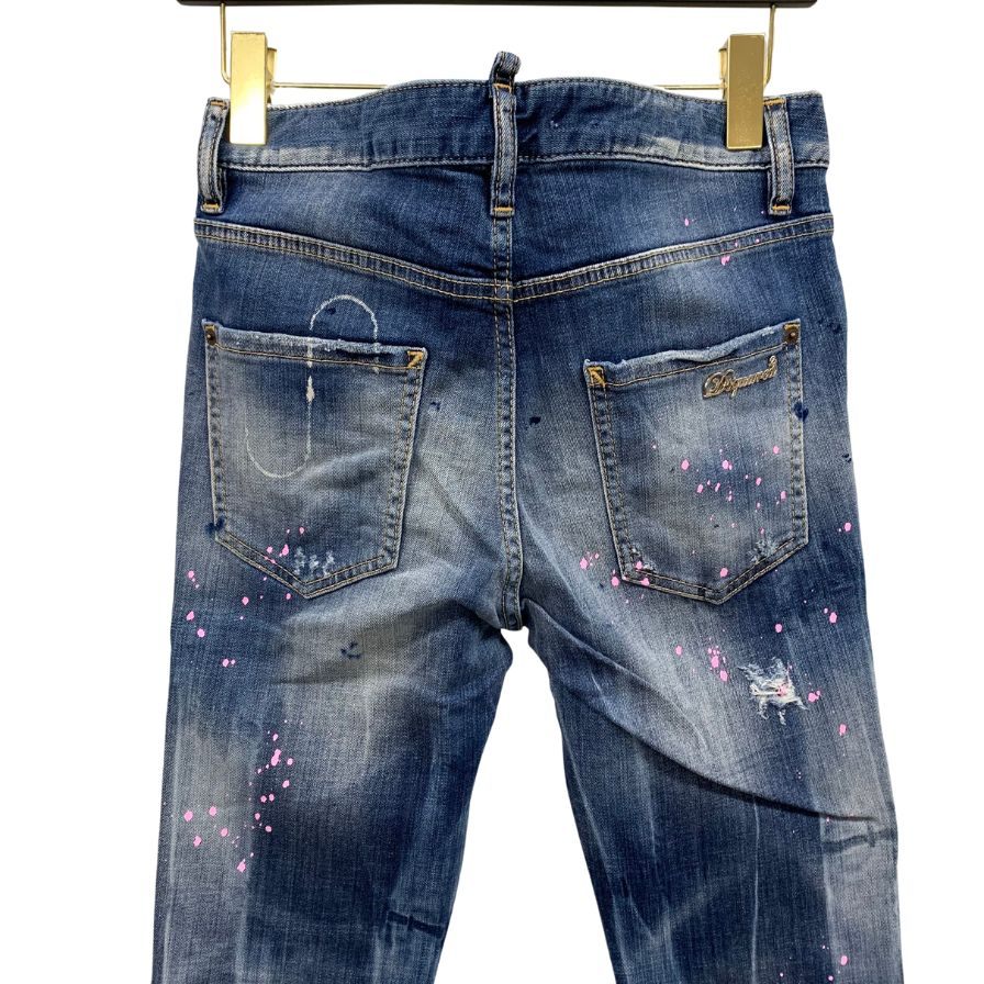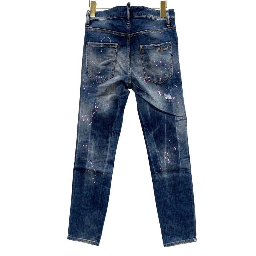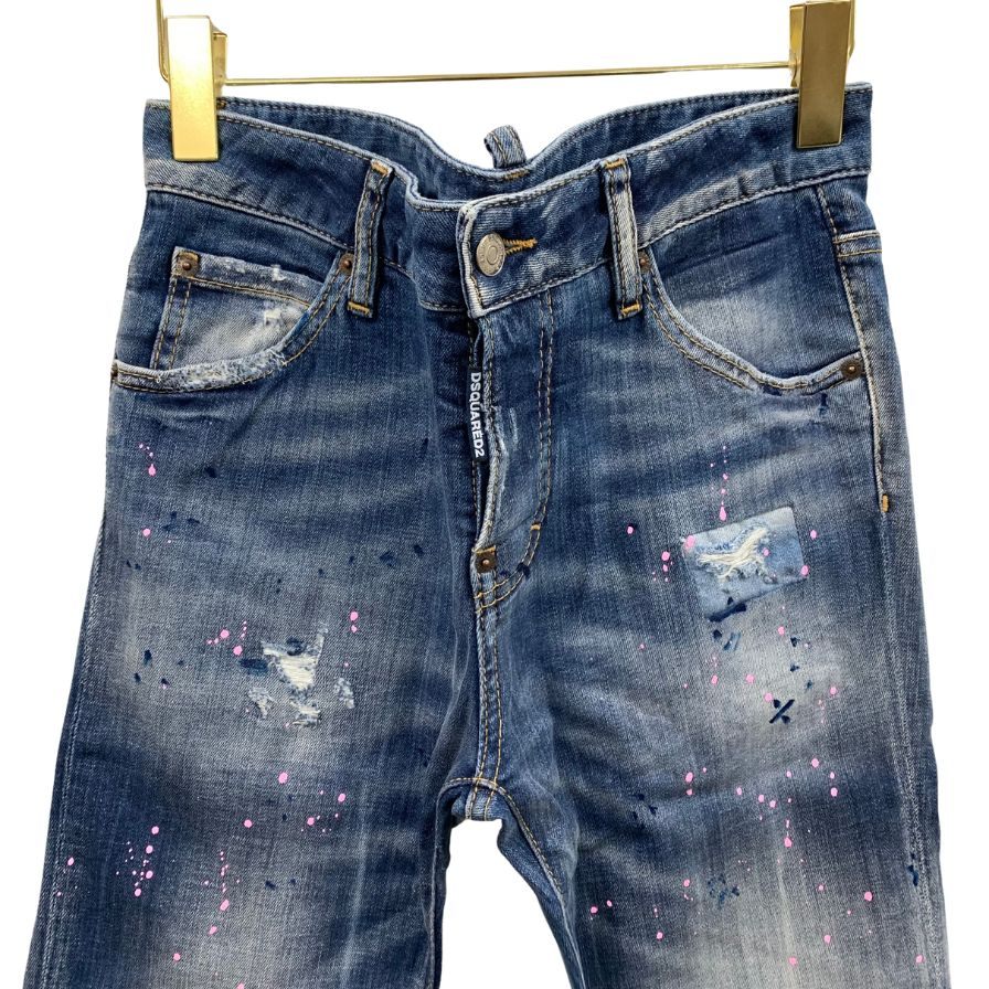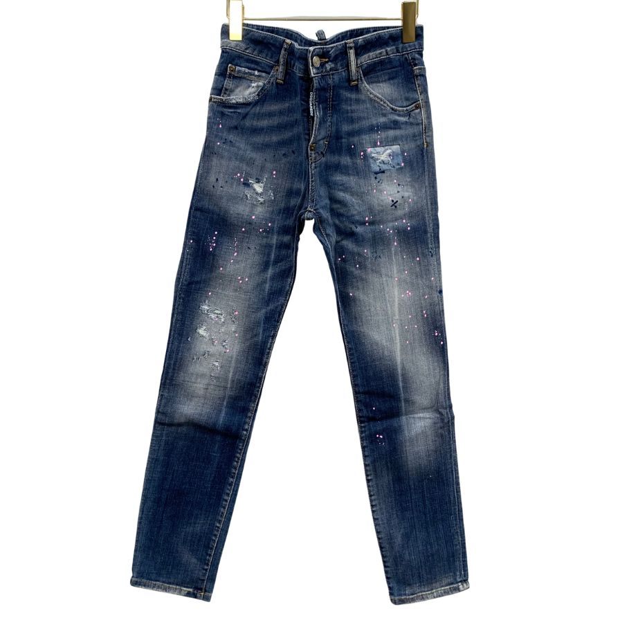 ディースクエアード デニムパンツ cool girl jean S75LA0628 ロゴ金具 ペイント加工 クラッシュ加工 コットン ポリウレタン ブルー系 レディース サイズ40 DSQUARED2 【AFB30】