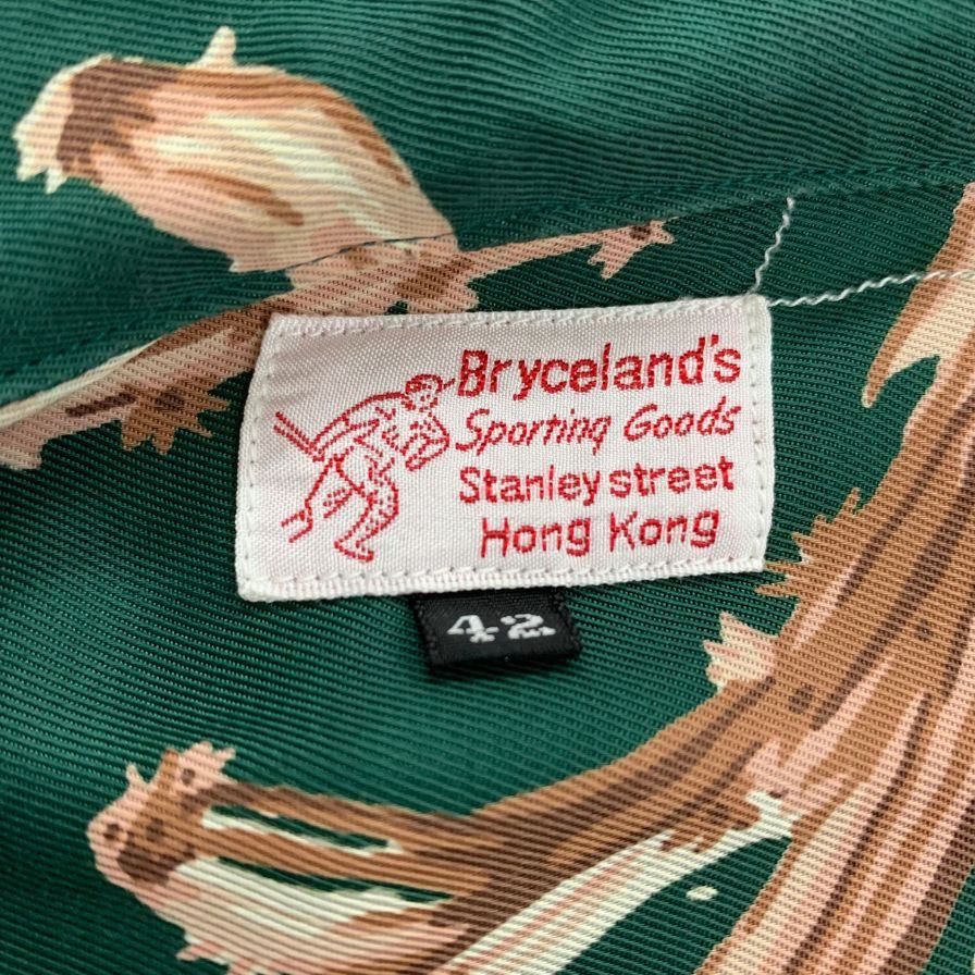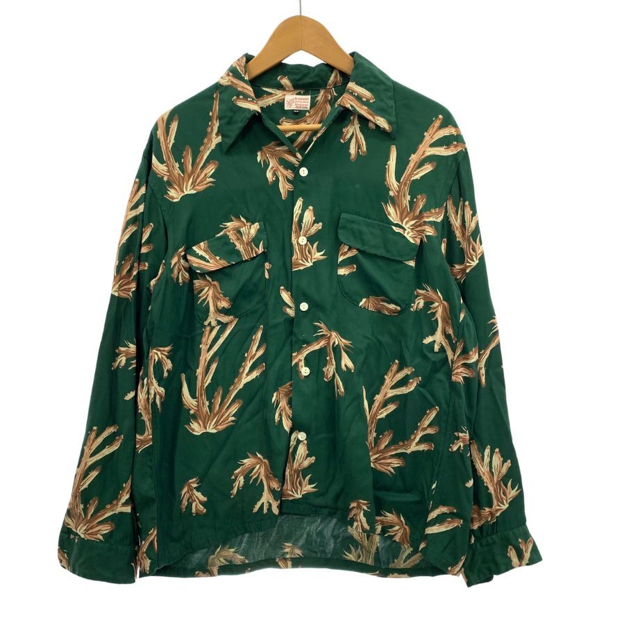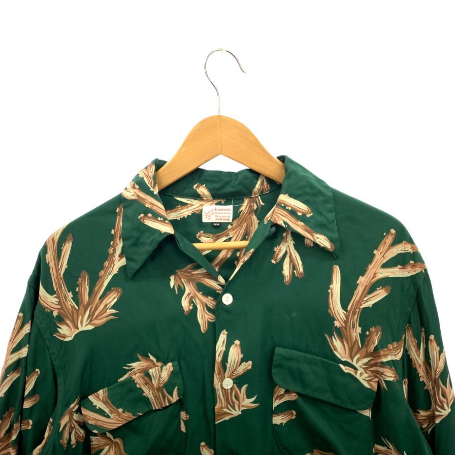中古◆ブライスランズ オープンカラーシャツ 長袖 レーヨン 総柄 グリーン メンズ サイズL Bryceland's 【AFB20】