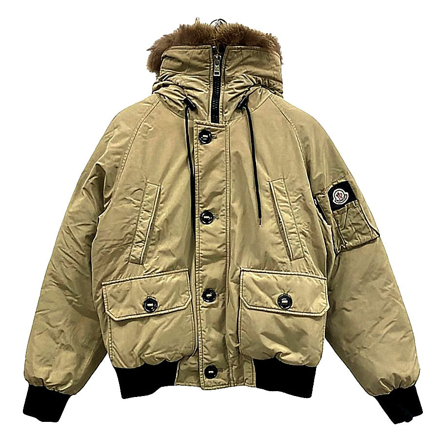 美品◆モンクレール ダウンジャケット サイズ2 メンズ ベージュ ファー付き MONCLER 【AFA6】
