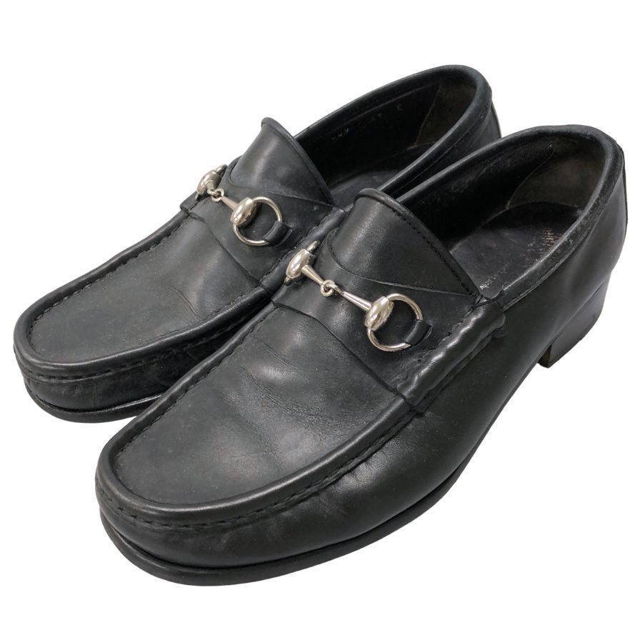 グッチ ローファー ホースビット シルバー金具 レザー メンズ サイズ41E ブラック GUCCI 約26.0cm【AFC46】