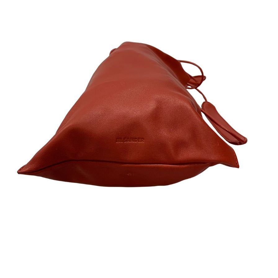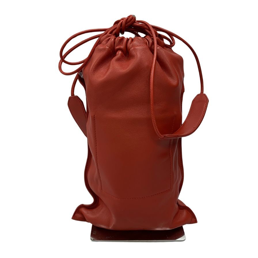 美品◆ジルサンダー ショルダーバッグ フラットドローストリングバッグ レザー レッド系 レディース JIL SANDER【AFE8】