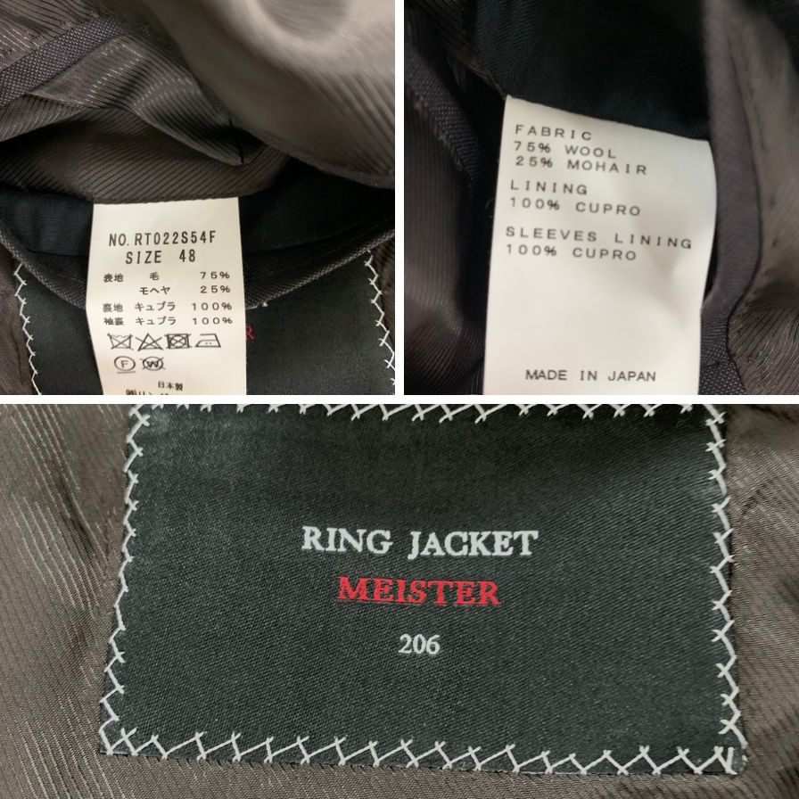 リングヂャケット スーツ 段返り3B シングル マイスター 206 ブラック サイズ48 メンズ RING JACKET MEISTER【AFF21】