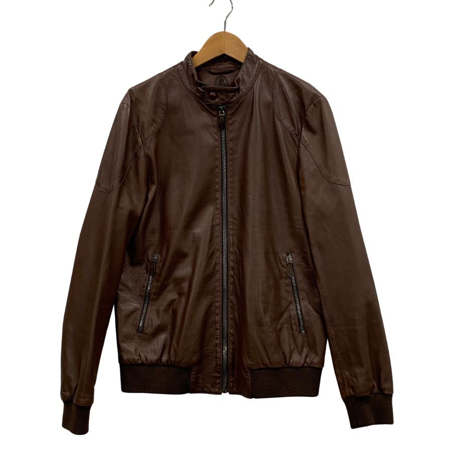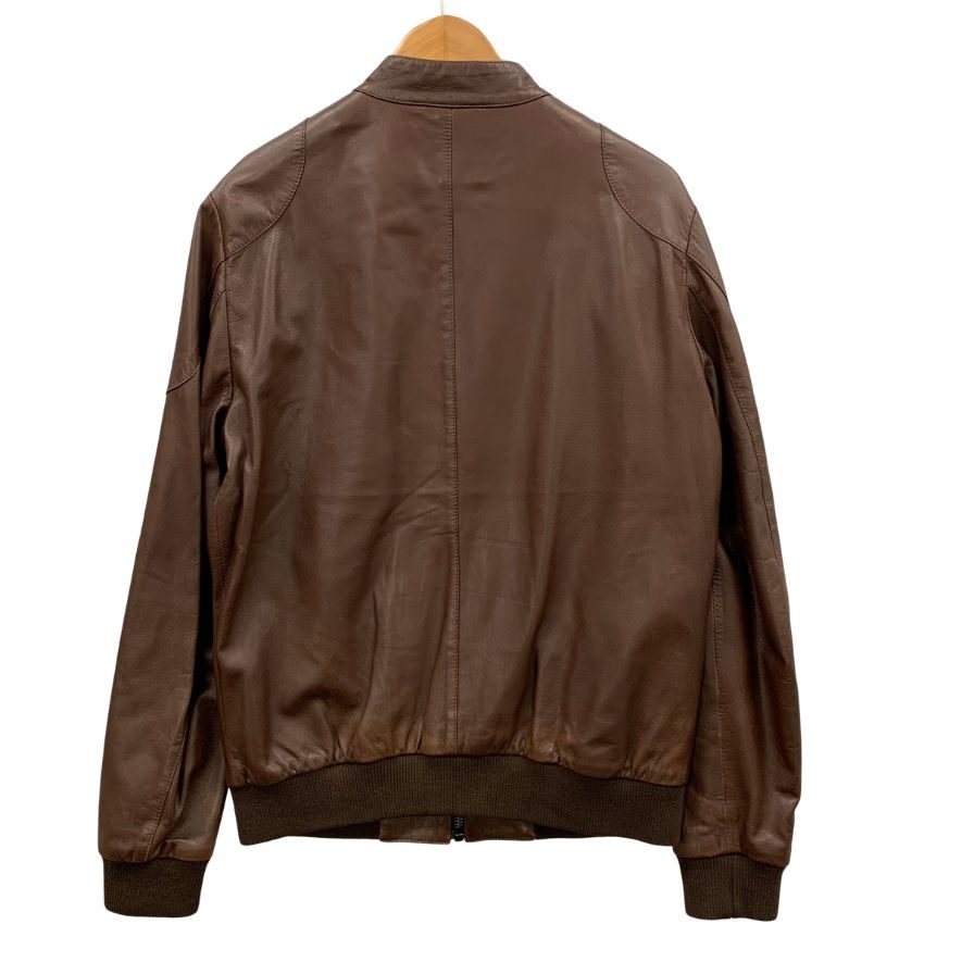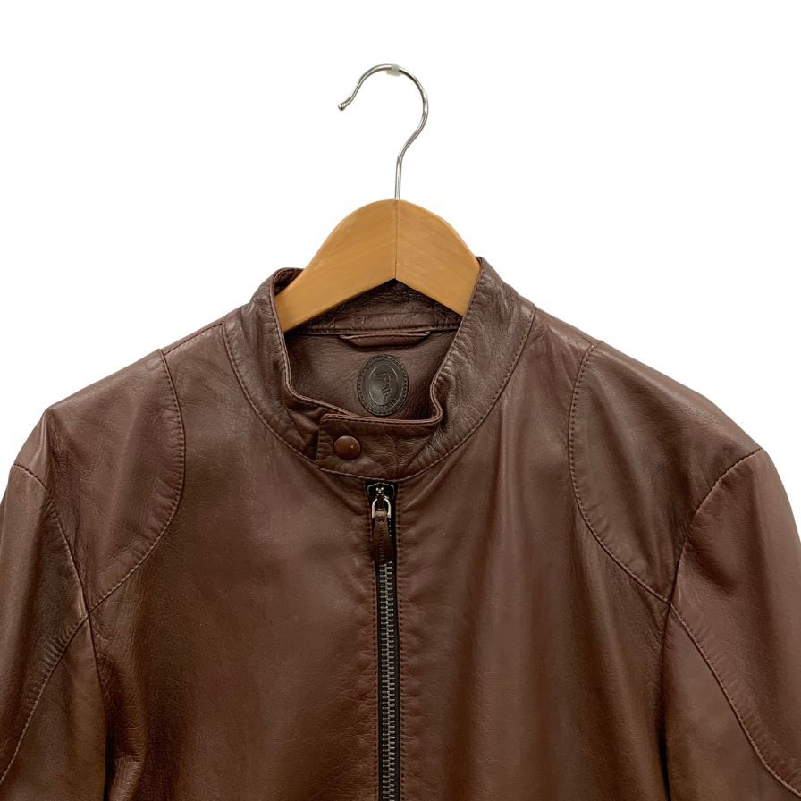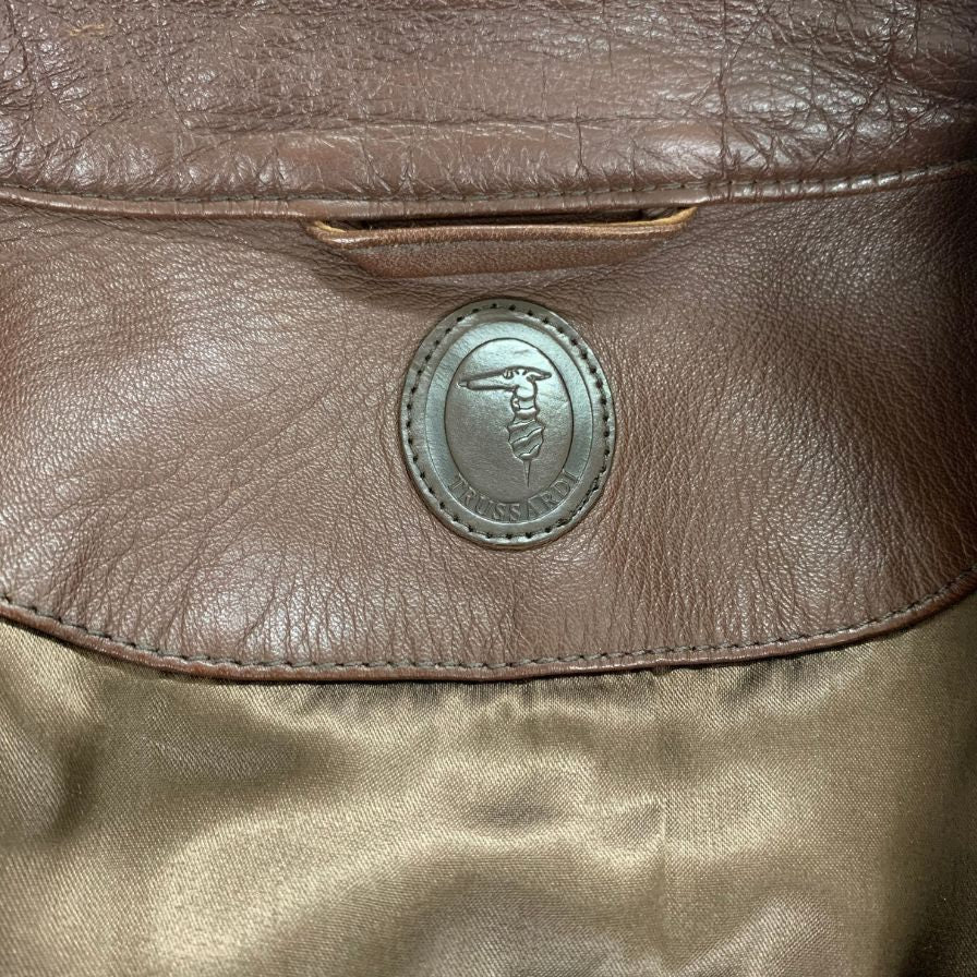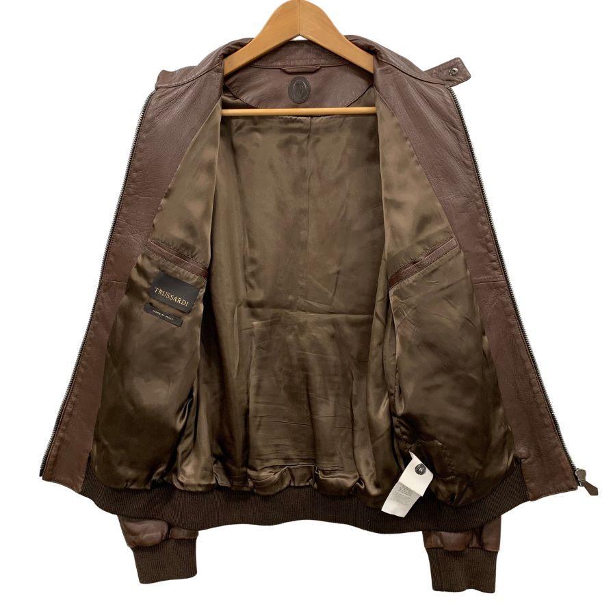 美品◆トラサルディ シングルライダースジャケット ラムレザー ブラウン メンズ サイズ50 TRUSSARDI 【AFG1】