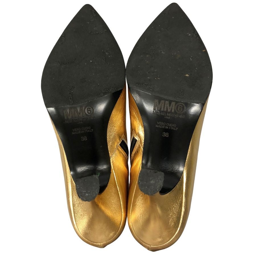エムエムシックス メゾンマルジェラ ヒールブーツ サイドジップ ゴールド レディース サイズ38 MM6 MAISON MARGIELA 約24.5cm【AFD4】