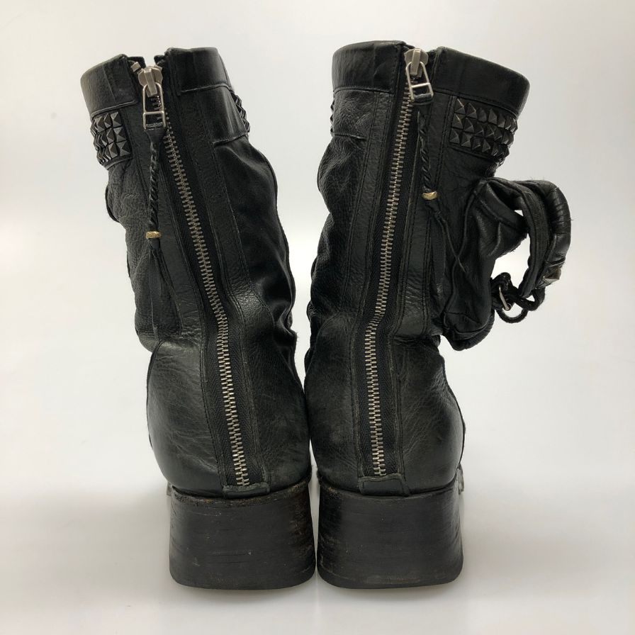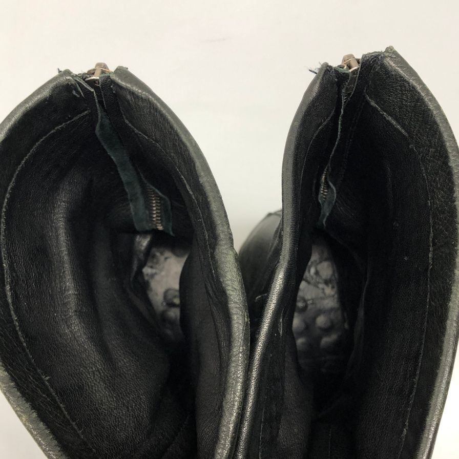 ケムリ ブーツ バックジップ スクエアトゥ レザー メンズ ブラック サイズ不明 KMRII 約不明cm【AFC28】