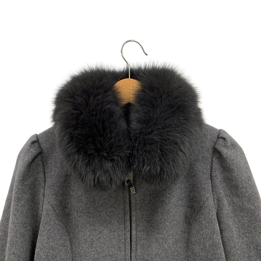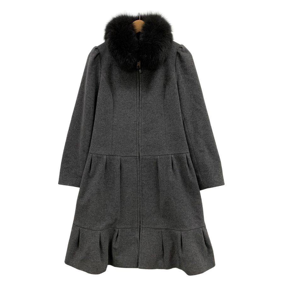 美品◆コトゥー コート ブルーフォックス カラー ウール グレー レディース サイズ38 COTTO 【AFF22】