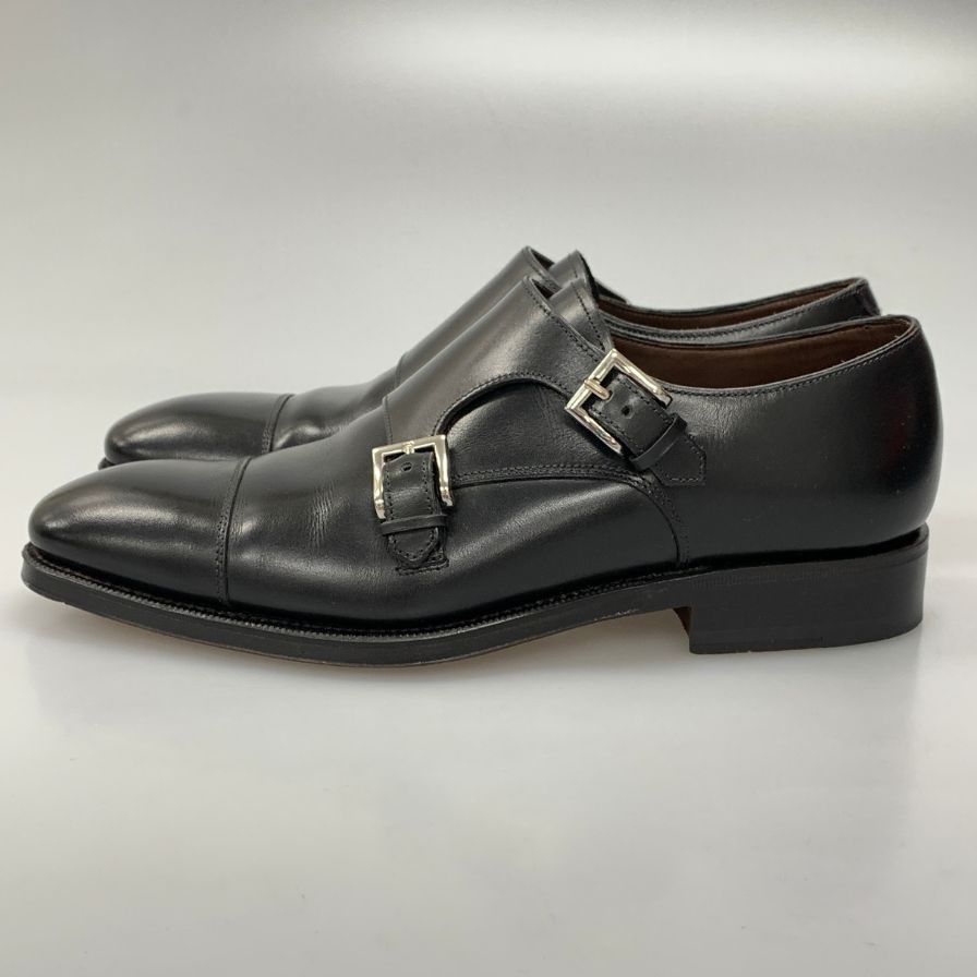 カルミナ トレーディングポスト別注 ダブルモンクシューズ 80544 ボックスカーフ レインラスト ブラック メンズ サイズ5.5E CARMINA ビジネスシューズ 約24.0cm【LA】【中古】