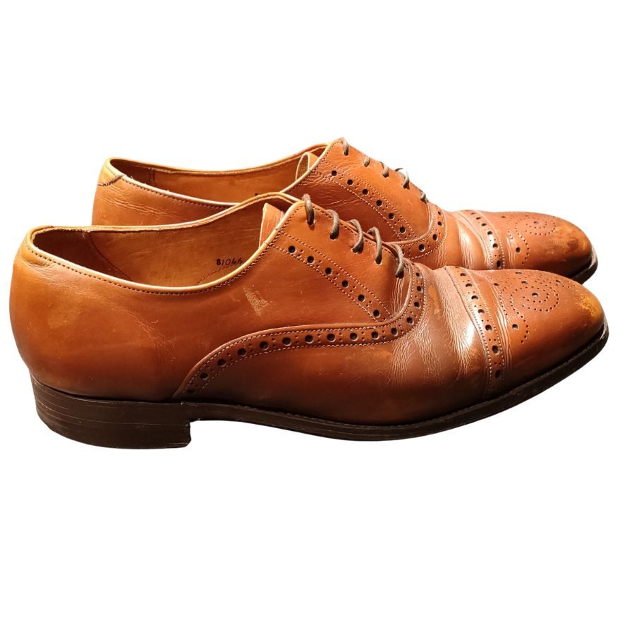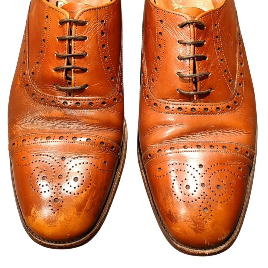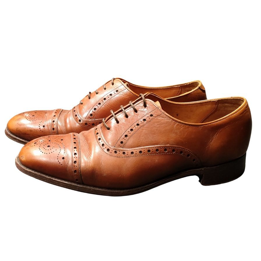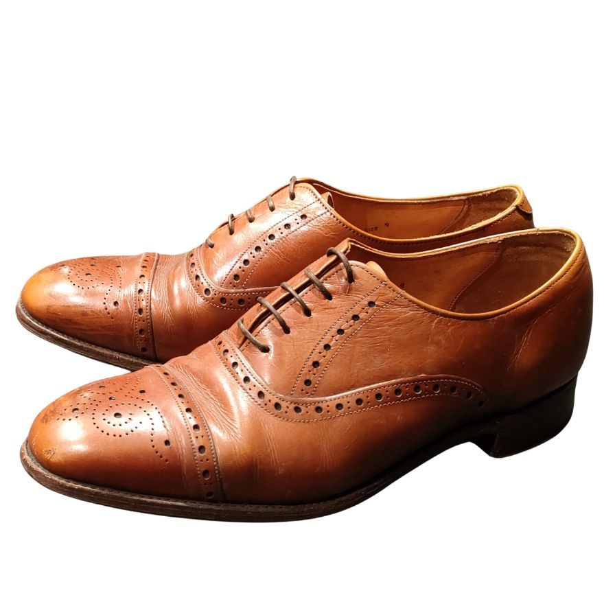 トリッカーズ レザーシューズ 筆記体ロゴ セミブローグ ブラウン メンズ サイズUK9 Tricker’s 約27.0cm【LA】【中古】